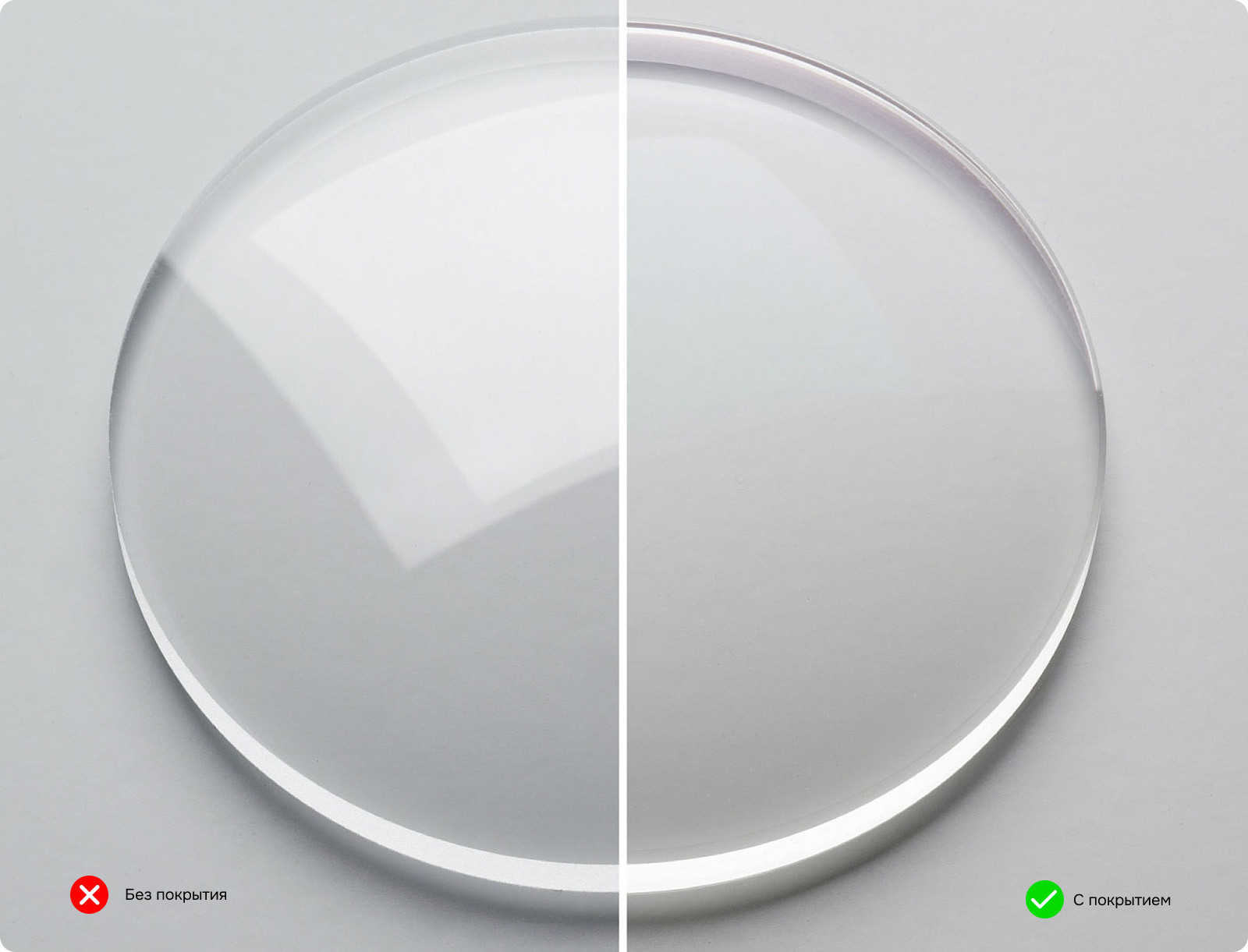 Антибликовые покрытия работают, уменьшая количество отраженного света на поверхности линз. Когда свет попадает на очки, часть этого света отражается обратно, что может создать блики и затруднить видимость. Антибликовое покрытие помогает уменьшить этот эффект, увеличивая количество света 85% у линзы без покрытия до 99% с топовым покрытием , проходящего через линзу и достигающего глаза. Это обеспечивает более ясное и контрастное зрение.